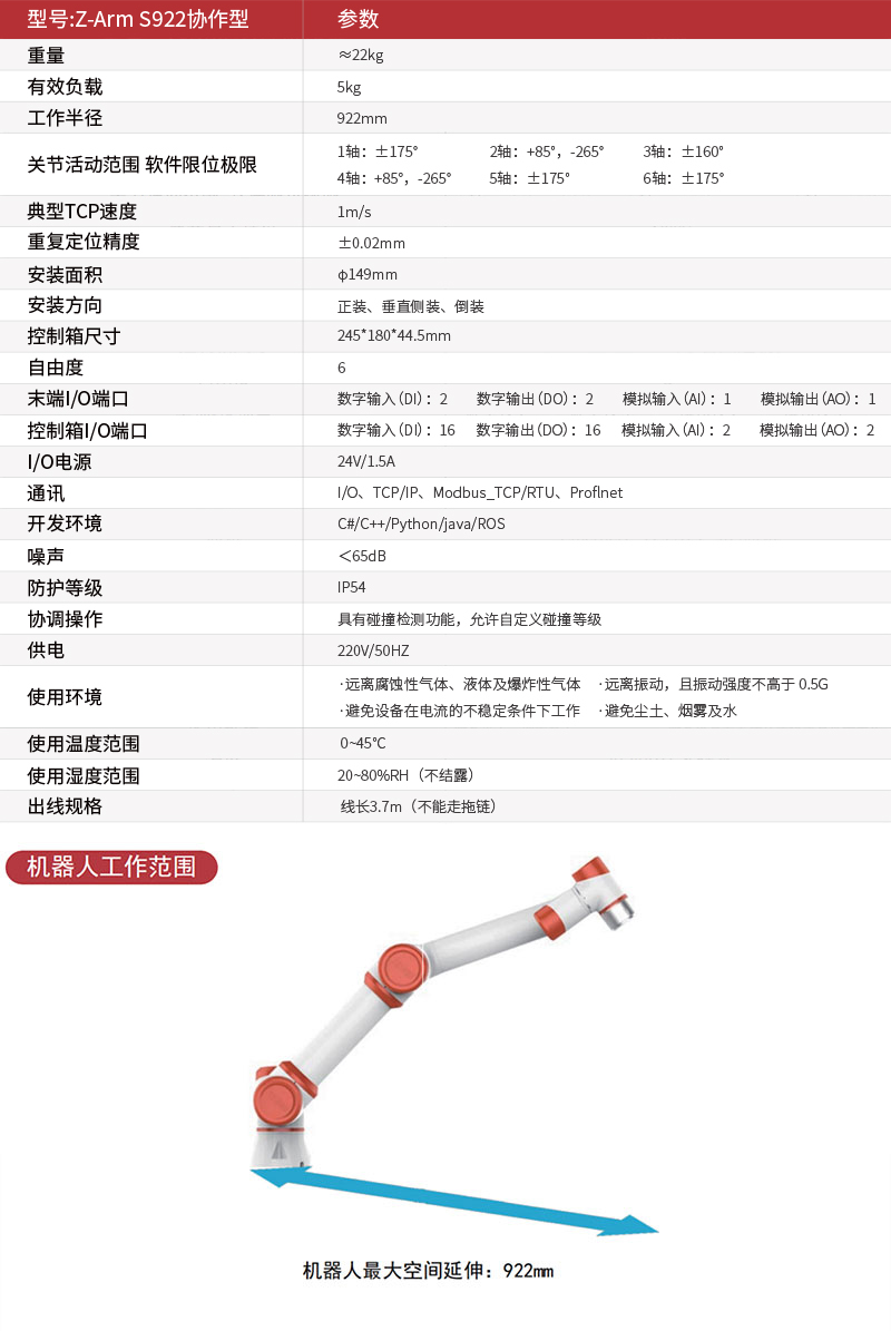首頁 / 六軸協作機械臂 / Z-Arm S922