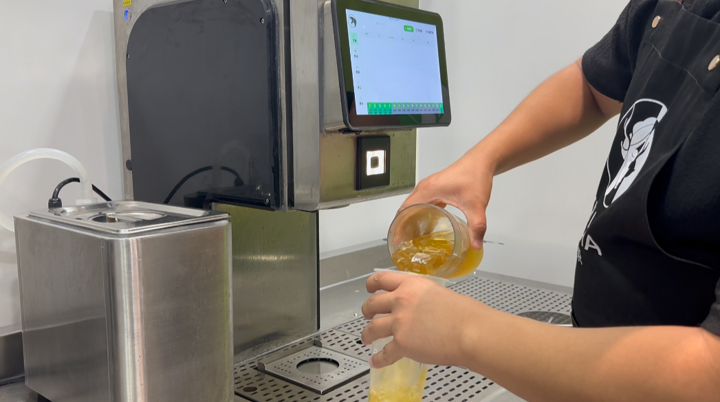 無需背配方,慧靈自動奶茶機掃一掃,8秒一杯