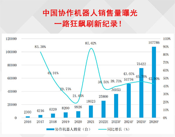 GGII的數(shù)據(jù)顯示,中國協(xié)作機器人市場銷量令人矚目。僅在2021年,銷量達到了18623臺,同比增長高達87.62%。市場規(guī)模也躍升至20.39億元,同比增長76.84%,增長幅度顯著。過去幾年的發(fā)展表明,協(xié)作機器人銷量及市場規(guī)模年均復(fù)合增長率分別為51.94%和41.46%。隨著技術(shù)的進步和產(chǎn)品價格的下降,預(yù)計協(xié)作機器人的接受度將進一步提高,但市場競爭也將愈發(fā)激烈。