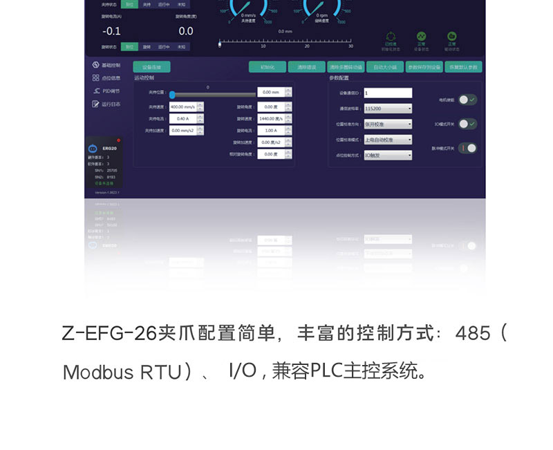 • 力、位、速度都可以通過Modbus精準控制