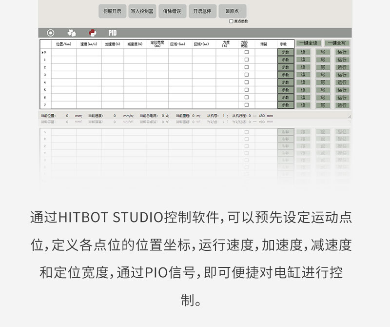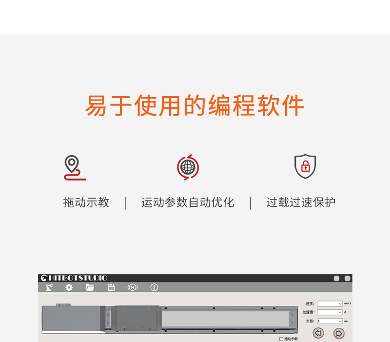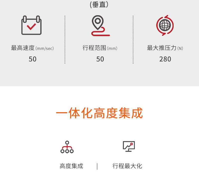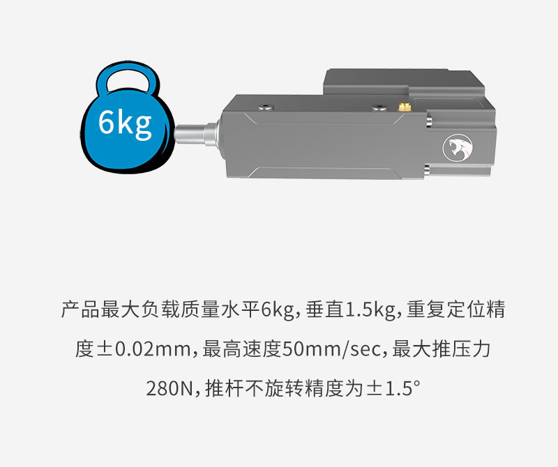 2023年1月10日 Lu, DongWu 智能電缸 0 Z-Mod-EP-35RS-50 首頁 / 智能電缸 / Z-Mod-EP-35RS-50 體積小、推力大 、高精度、性價比高驅(qū)動內(nèi)置,簡單易操作末端抗彎能力強(qiáng)力、位置、速度都可以通過Modbus精準(zhǔn)控制長壽命:千萬次循環(huán),超越氣缸控制方式:485、I/O、脈沖 下載3D模型 下載產(chǎn)品手冊 體積小、推力大 、高精度、性價比高驅(qū)動內(nèi)置,簡單易操作末端抗彎能力強(qiáng)力、位置、速度都可以通過Modbus精準(zhǔn)控制長壽命:千萬次循環(huán),超越氣缸控制方式:485、I/O、脈沖 下載3D模型 下載產(chǎn)品手冊 產(chǎn)品描述 資料下載 產(chǎn)品描述 Z-Mod-EP-35RS-50 核心參數(shù) 1-2mm 280N? 導(dǎo)程 最大連續(xù)推壓力 50mm ? ? ? ? ? ? ? ? ? ? ? ? ? ?±0.02mm 行程 ? ? ? ? ? ? ? ? ? ? ? ? ? ? ? ? ? ? ? ? ? ? ? ?重復(fù)定位精度 *線框尺寸圖 規(guī)格參數(shù) 型號性能 行程 50mm 導(dǎo)程 1mm 2mm 最大速度 50mm/s 100mm/s 最大連續(xù)推壓力 280 150N 最大負(fù)載質(zhì)量 水平:6kg / 垂直:1.5kg 水平:3kg / 垂直:1.5kg 重復(fù)定位精度 ±0.02mm 力控精度 ±10% 推桿不旋轉(zhuǎn)精度 ±1.5° 推桿末端允許力矩 1N·m 整機(jī)重 0.8kg 尺寸規(guī)格 160*40*86mm 控制方式 I/O控制、485總線控制、脈沖控制(脈沖+方向) 工作電壓 DC24V±10% 額定電流 2A 峰值電流 6A 防護(hù)等級 IP40 使用環(huán)境 0~40℃,85% RH以下(不結(jié)霜) 資料下載 點(diǎn)擊下載產(chǎn)品手冊 點(diǎn)擊下載3D圖 點(diǎn)擊下載運(yùn)動范圍圖 Z-Mod-EP-35RS-50核心參數(shù) 產(chǎn)品詳細(xì)參數(shù) 行程50mm導(dǎo)程1mm2mm最大速度50mm/s100mm/s最大連續(xù)推壓力280N150N最大負(fù)載質(zhì)量水平:6kg / 垂直:1.5kg水平:3kg / 垂直:1.5kg重復(fù)定位精度±0.02mm力控精度±10%推桿不旋轉(zhuǎn)精度±1.5°推桿末端允許力矩1N·m整機(jī)重0.8kg尺寸規(guī)格160*40*86mm控制方式I/O控制、485總線控制、脈沖控制(脈沖+方向)工作電壓DC24V±10%額定電流2A峰值電流6A防護(hù)等級IP40使用環(huán)境0~40℃,85% RH以下(不結(jié)霜) 產(chǎn)品詳情 相關(guān)產(chǎn)品
