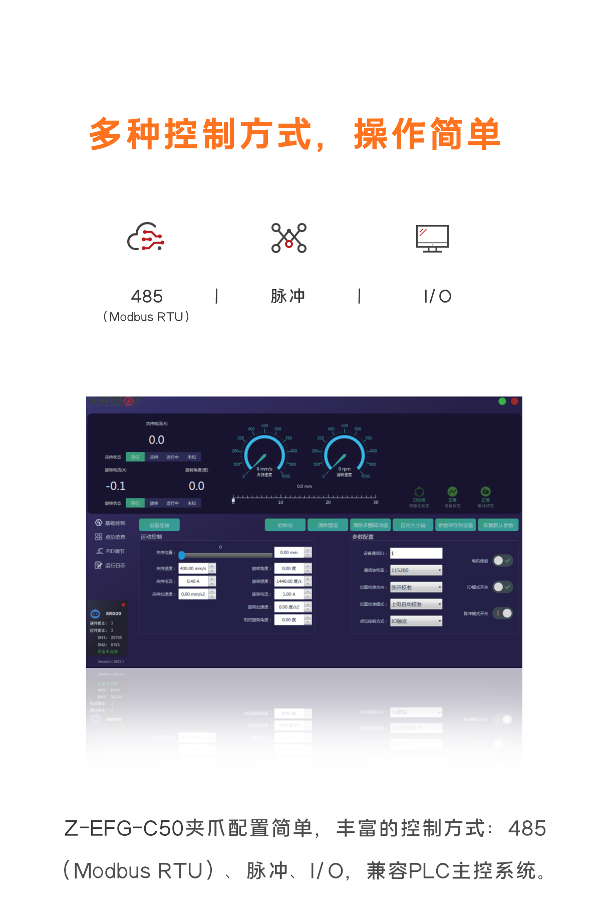 • 力、位、速度都可以通過Modbus精準控制