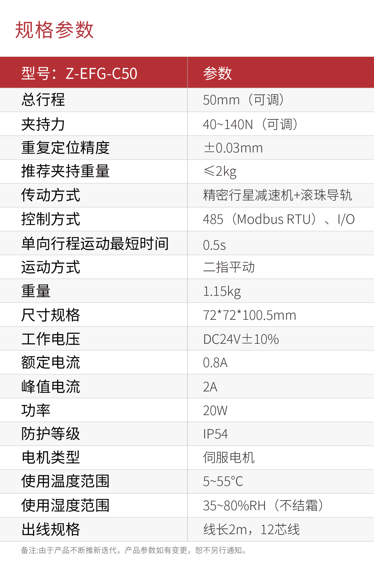 Z-EFG-C50 核心參數